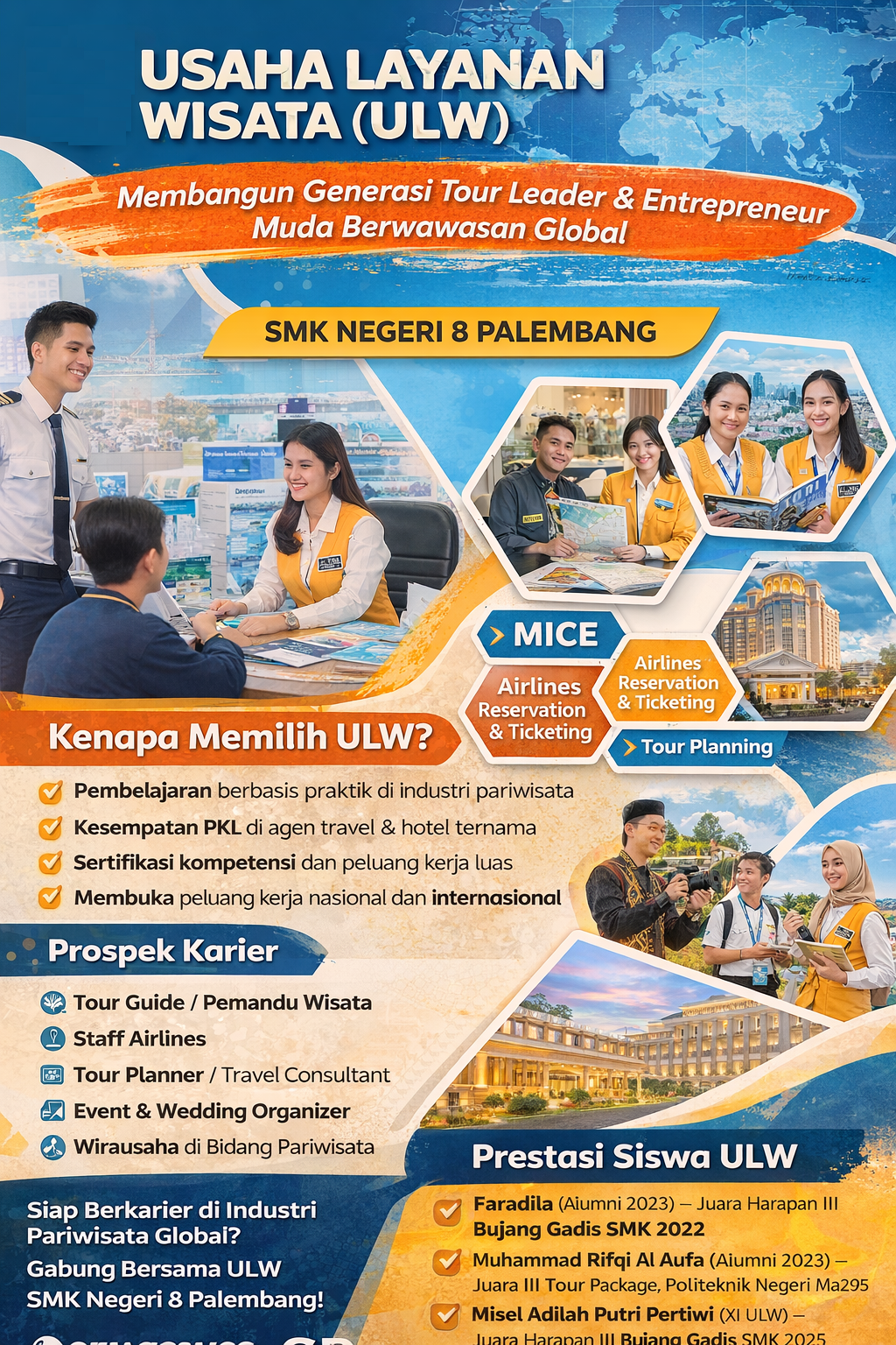 Bergabunglah bersama Usaha Layanan Wisata SMK Negeri 8 Palembang dan jadilah bagian dari generasi profesional di bidang pariwisata.